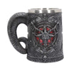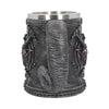 From the twisted minds of alternative brand Nemesis Now's in-house design team, this occult tankard is a macabre lovers dream. Each side of the body has a small patent red background which sits under a raised pentagram, the words 'Solve' and 'Coagula' adorn its outer circle. Atop this the head of a triple-horned Sabbatic Goat with a pentagram raised from its skull. Above the head, a pair of crescent moons sit while below it, the heads of two King cobras are poised to attack. The handle is made from the Goat's twisted horn which curls down to the base. Cast in the finest resin before being painstakingly hand-painted, this piece would make the perfect addition to any Gothic home and comes with a stainless-steel insert for ease of cleaning.