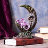 This Amethyst Slumber Ornament rises from the gnarled roots, as this tree has been shaped into a moon crescent. With a face carved into it, the tree looks on in admiration as a pink metallic dragon sleeps peacefully upon it. This beautiful piece not only represents raw nature but also immortality and the cycle of life. Cast in the finest resin before being expertly hand-painted, this fantasy figurine is a must-have product for any fantasy lover.