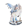 Cast in high-quality resin, this enchanting Fairy figurine from alternative brand Nemesis Now's giftware collection. Walking along a snowy forest floor, deftly stepping past a dead log, this pure white Unicorn turns its head skittishly, golden horn pointing forward as it raises a hoof. Holding its head to soothe it, a young Fairy calms it down, her long blue dress dusted with white snow as it flows to the ground. Her light brown hair blows in the wind from beneath her fur-lined hat as her blue wings stretch out behind her. Lovingly hand-painted, this magical statuette radiates an aura of calm that can transform any room.