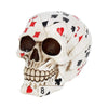 The Dead Mans Hand has been dealt a new card with this expertly crafted skull! The cranium stares straight ahead, a devilish grin haunting its mouth. Covering the skull is a plethora of playing cards, all facing outwards, showing different suits and numbers. Perfect for anyone who likes to take a gamble!
