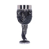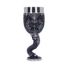 This Pawzuph Goblet is the union of good and evil, as you look into its black eyes you notice the darkness that resides. Inside this cat appears to be the spirit of Baphomet, encapsulated by goat horns and satanic symbology. With ornate silver detailing and an s shaped stem this amalgamation of horror and delight will make the perfect addition to any feline fanatics collection.