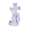 Enchanting, elegant and pure, this beautiful white angel stands close to the pink cross which has the words 'Weave in faith and God will find the Thread' emblazoned onto it. She holds onto the lush pink roses which has a butterfly resting upon them. Cast in the finest resin before being expertly hand-painted, this figurine will stand out in any display.